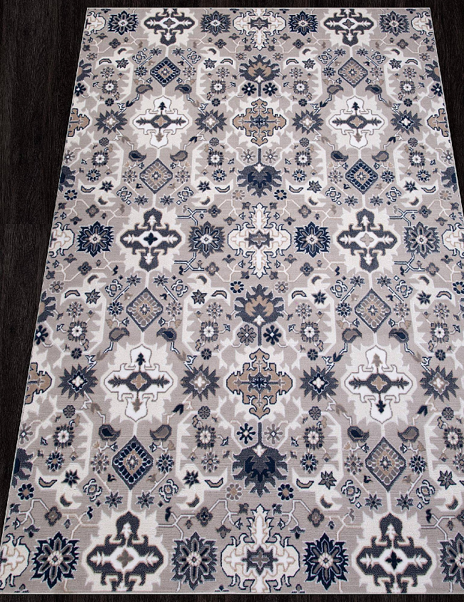 Коротко: «Ковер RICHI 8670 GRAY-BLUE» (RICHI, MERINOS) — ковер для дома, гостиной. материал: полиэстер + Полипропилен, стиль: в классическом стиле, цвет: серый, синий, кремовый, ворс: 10 мм, плотность: 179200 точек/м², основа: джут, ориентирован на классическую подачу, страна производства: Россия.